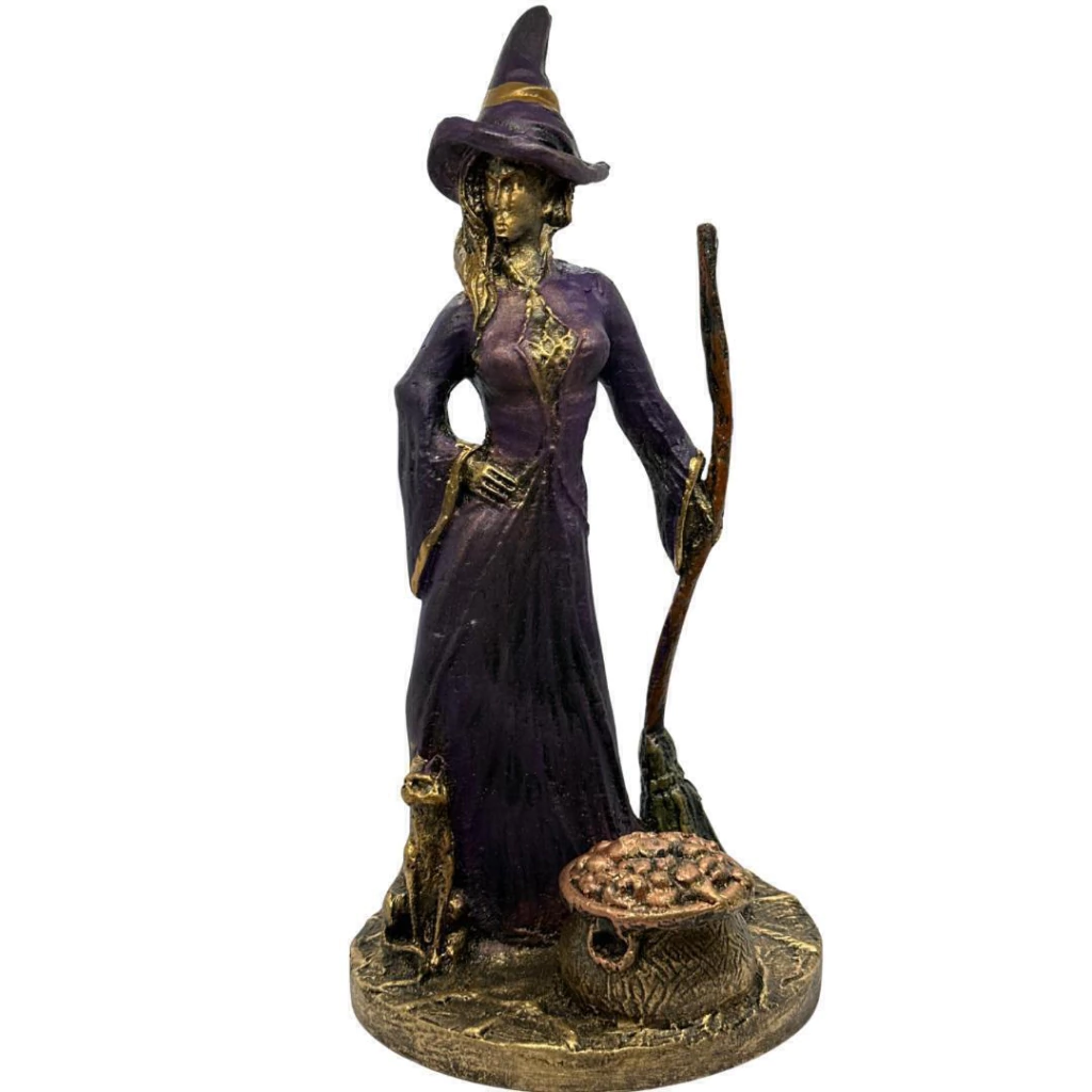 O Incensário é uma peça encantadora e multifuncional que traz o universo da bruxaria tradicional diretamente para sua decoração ou altar. Com 21 cm de altura, esta escultura retrata uma bruxa em pleno ritual, ao lado de seu caldeirão mágico, pronta para transformar energias e intenções.