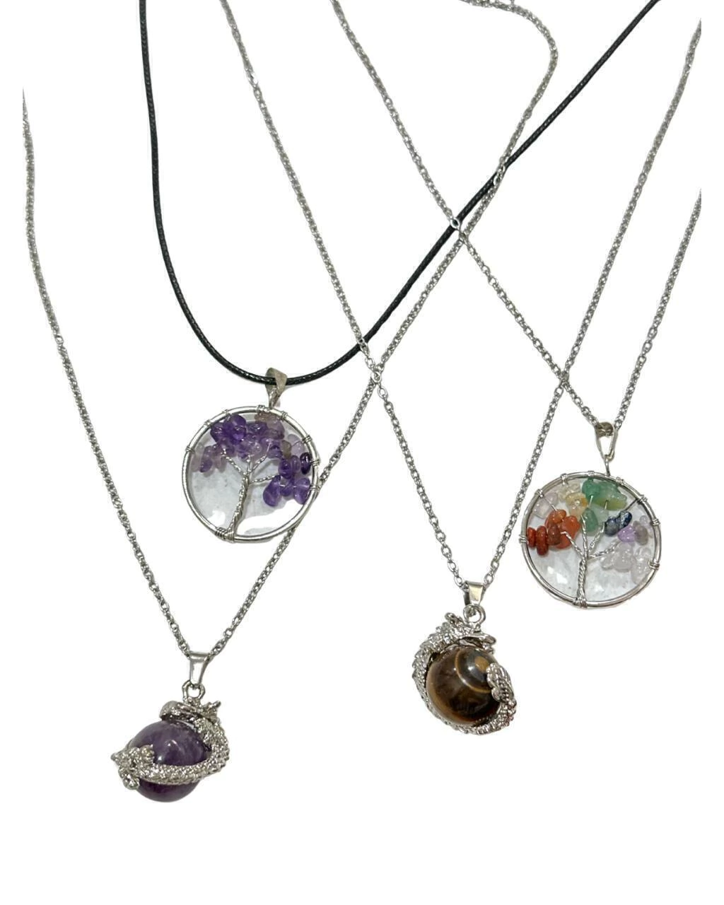 O pingente é composto por pedras naturais selecionadas, com cores, formas e texturas exclusivas — nenhuma peça é igual à outra. Montado em um cordão fino e resistente (pode ser couro, aço inox, prata ou outro material, dependendo do seu modelo), ele é perfeito para quem busca um acessório com significado e conexão com a natureza.