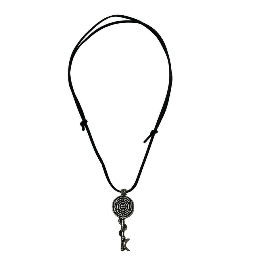 Conecte-se com a energia mística e protetora da Deusa Hécate, guardiã dos caminhos, das encruzilhadas e da magia ancestral. Este colar traz o símbolo da Chave de Hécate, representando a abertura de portais espirituais, sabedoria oculta e proteção nos momentos de transição.