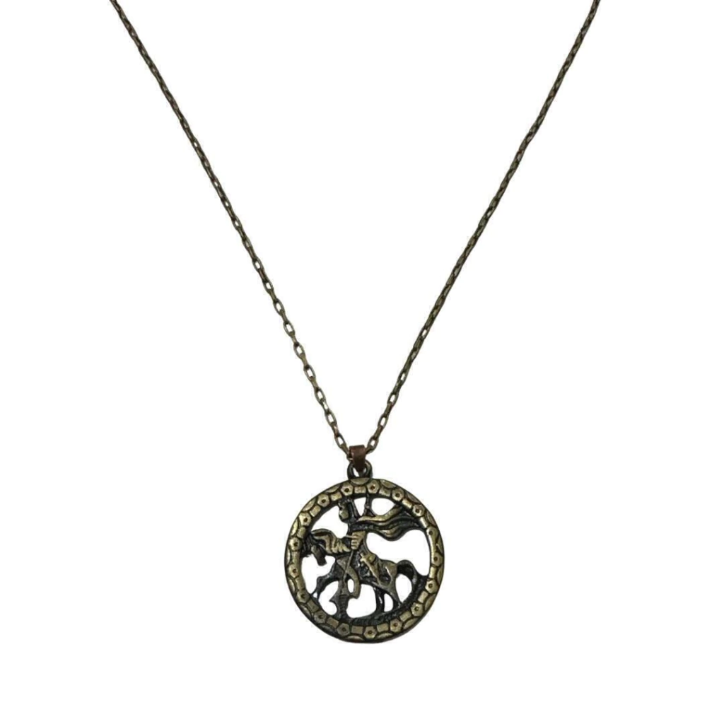 Pingente com imagem de São Jorge montado em seu cavalo