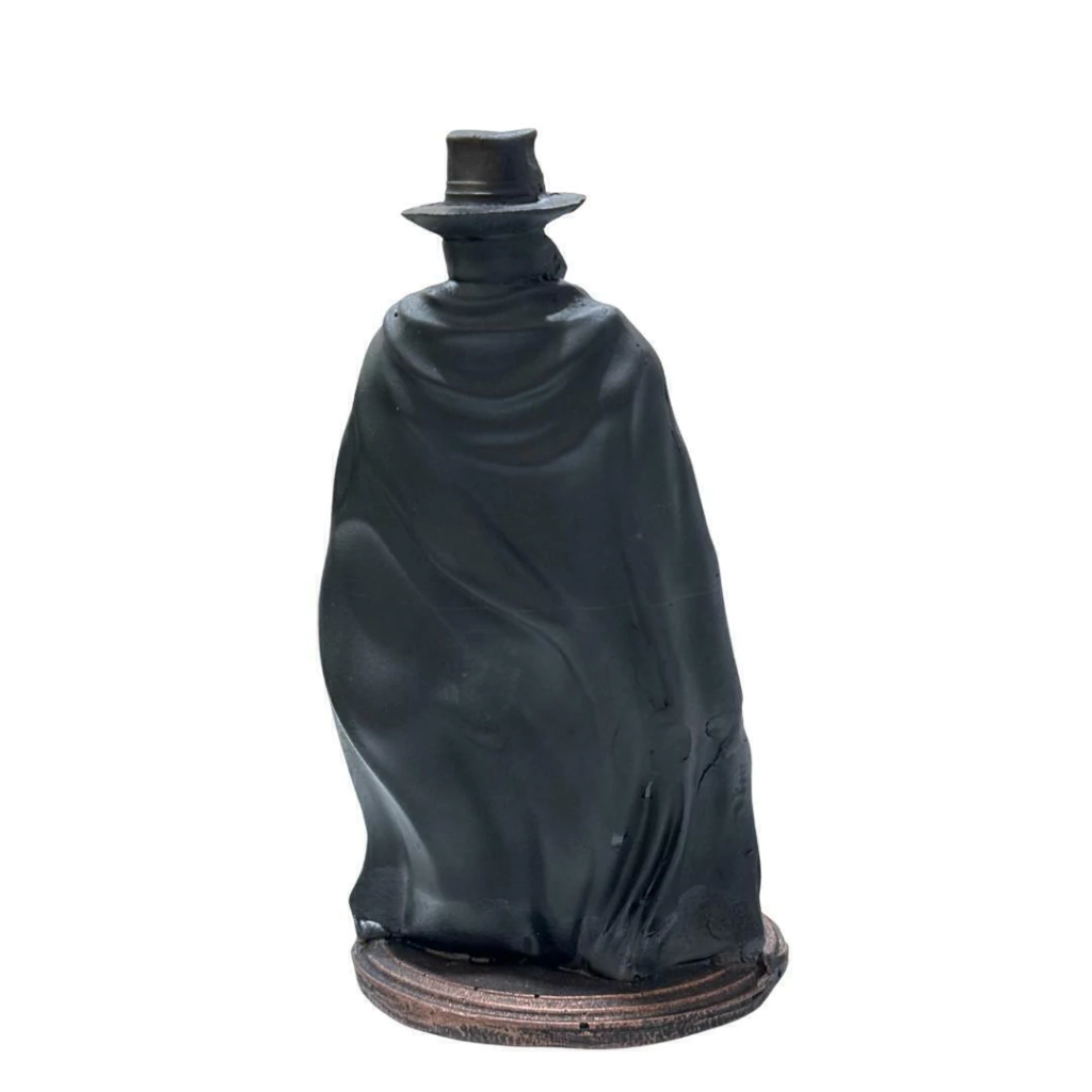 Imagem de Exu Capa Preta, com aproximadamente 15cm de altura, perfeita para altares, firmezas e espaços de devoção. Representado com sua icônica capa negra, símbolo de mistério, força e proteção espiritual, Exu Capa Preta atua na abertura de caminhos, corte de demandas e defesa contra energias negativas.