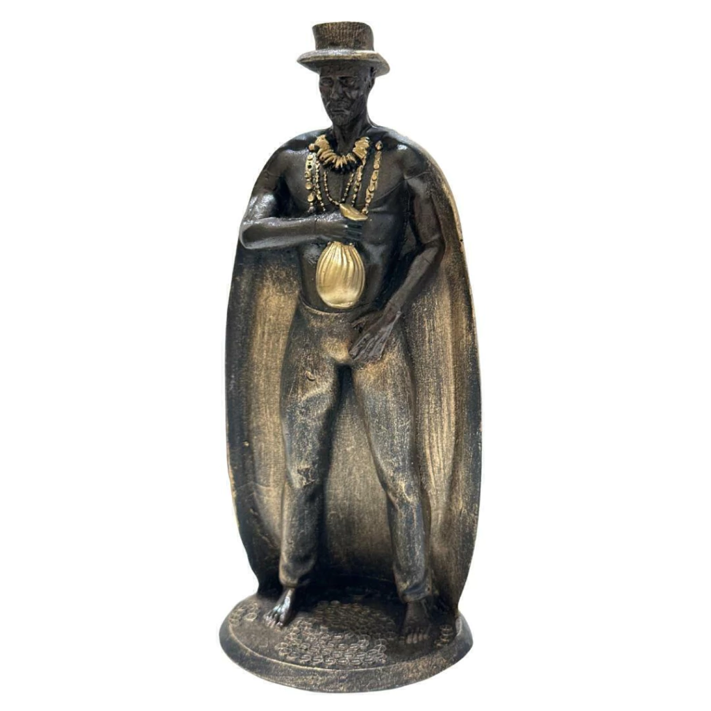 Imagem de Exu do Ouro, com aproximadamente 15cm de altura, representando a força da prosperidade, riqueza espiritual e abertura de caminhos materiais. Exu do Ouro é uma entidade poderosa que atua na atração de oportunidades, proteção contra inveja e equilíbrio financeiro com responsabilidade.