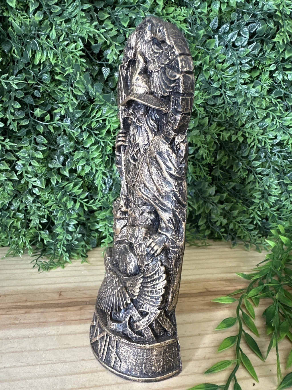 Descubra a força e a sabedoria do Deus Odin! Esta impressionante imagem, feita de resina e pintada em bronze, traz a majestade e a simbologia desse poderoso deus nórdico para o seu lar. Com detalhes refinados, cada peça é uma verdadeira obra de arte que representa a busca por conhecimento e a conexão com o divino.