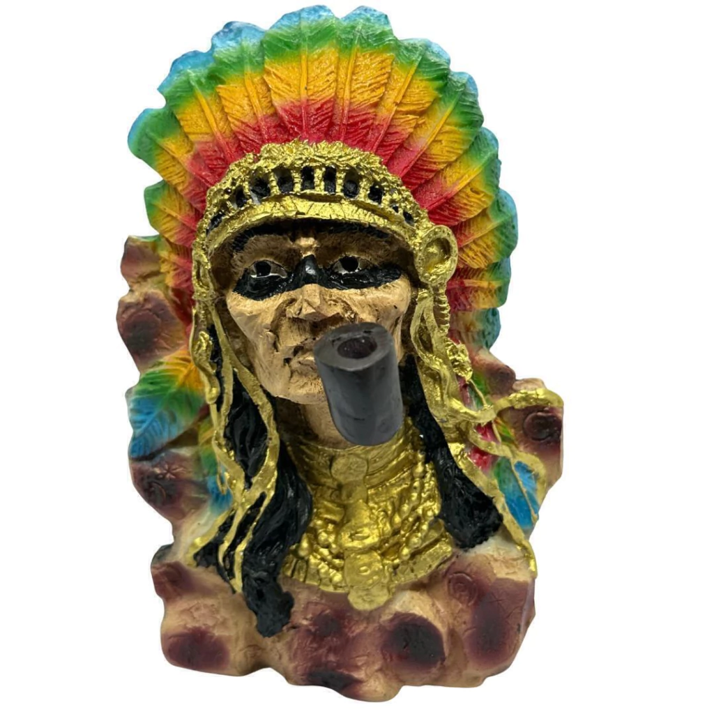 O Incensário Cascata Índio em Resina une arte, simbolismo e funcionalidade. Fabricado em resina de alta qualidade, apresenta acabamento detalhado com a figura de um índio, permitindo que a fumaça do incenso deslize suavemente, criando um efeito cascata relaxante e visualmente encantador.
