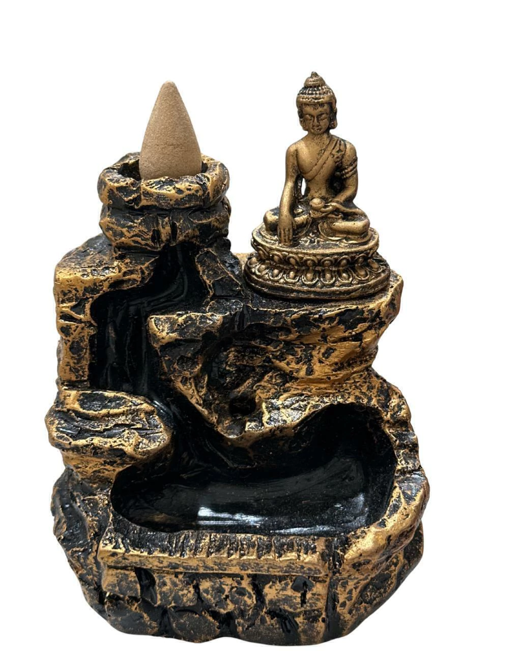 O Incensário Cascata Monge de 12cm une serenidade, arte e espiritualidade em uma única peça. Ideal para uso com incensos do tipo backflow (fluxo reverso), ele cria um efeito hipnotizante de fumaça que desce suavemente como uma cachoeira, enquanto a figura do monge transmite calma, sabedoria e contemplação.