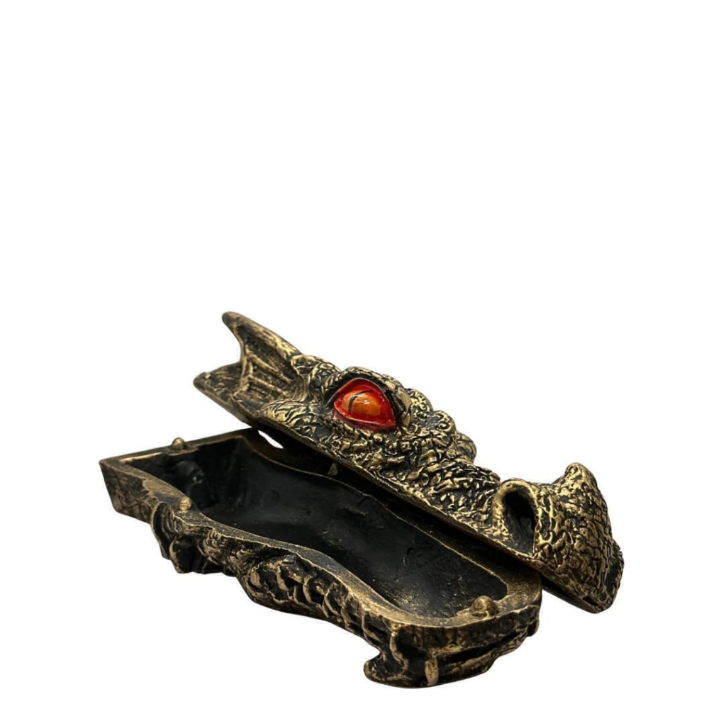 Confeccionado em resina resistente, o incensário possui acabamento artesanal que destaca escamas, curvas e expressões do dragão, tornando a peça visualmente imponente. O canal central garante que as cinzas do incenso sejam coletadas de forma prática, mantendo o ambiente limpo e organizado.