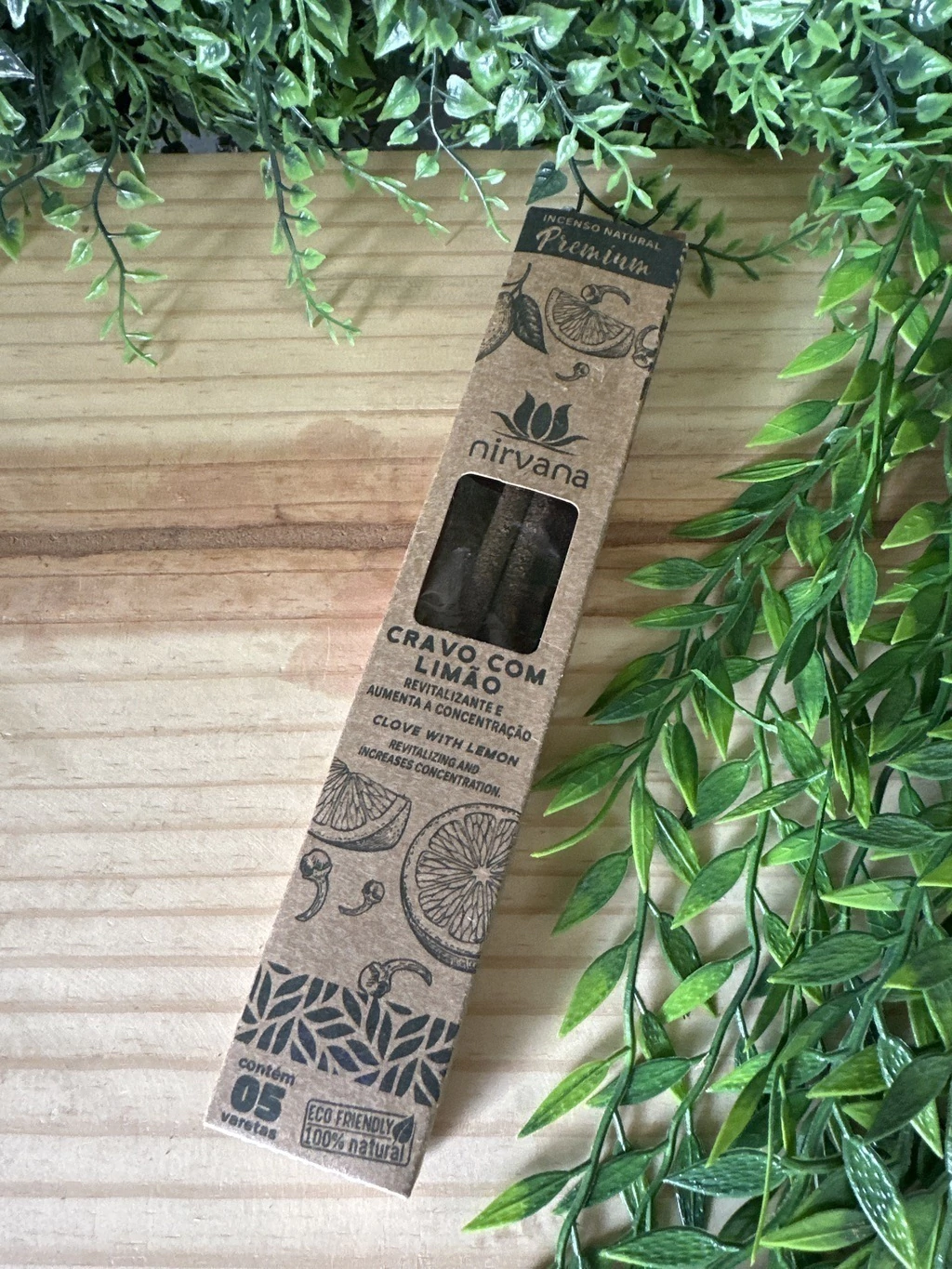 Experimente a energia refrescante do Incenso Cravo com Limão Premium - Nirvana e transforme sua rotina em um ritual de bem-estar e tranquilidade!