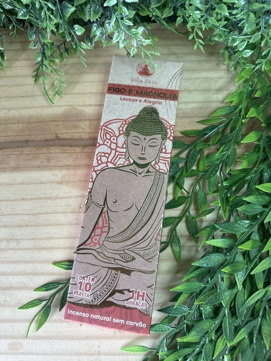 Breve descrição do produto: O Incenso Vila Zen Figo e Magnólia é uma combinação única que traz a suavidade do figo e a elegância da magnólia para o seu ambiente. Este incenso natural não só proporciona uma fragrância envolvente, mas também é ideal para criar uma atmosfera de tranquilidade e harmonia. Perfeito para meditações, momentos de relaxamento ou simplesmente para purificar o ar, ele transforma qualquer espaço em um refúgio de paz.