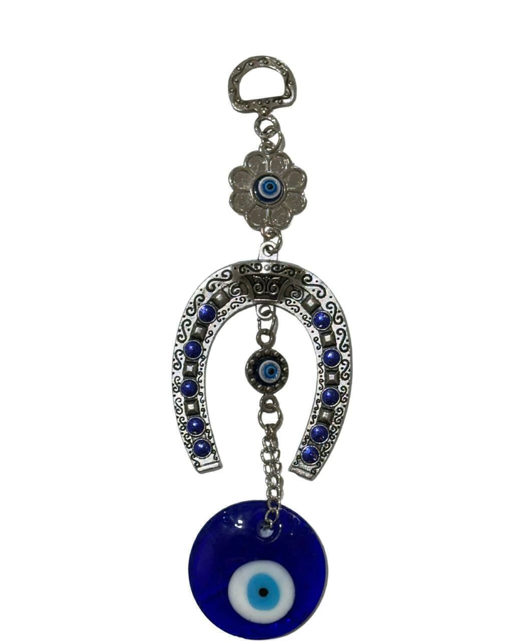 Este mobile combina dois poderosos símbolos de proteção e sorte: a ferradura e o olho grego. Com 17 cm de altura, é ideal para pendurar em portas, janelas ou paredes, trazendo boas energias e afastando vibrações negativas.