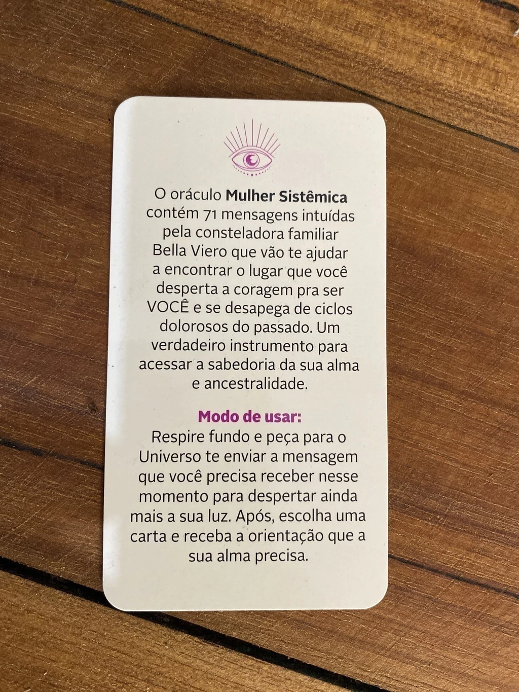 O Oráculo Mulher Sistêmica oferece uma abordagem única, integrando sabedoria ancestral e práticas contemporâneas. Cada carta é um convite à reflexão e à transformação, ajudando você a se conectar com sua essência feminina e a harmonizar suas energias.