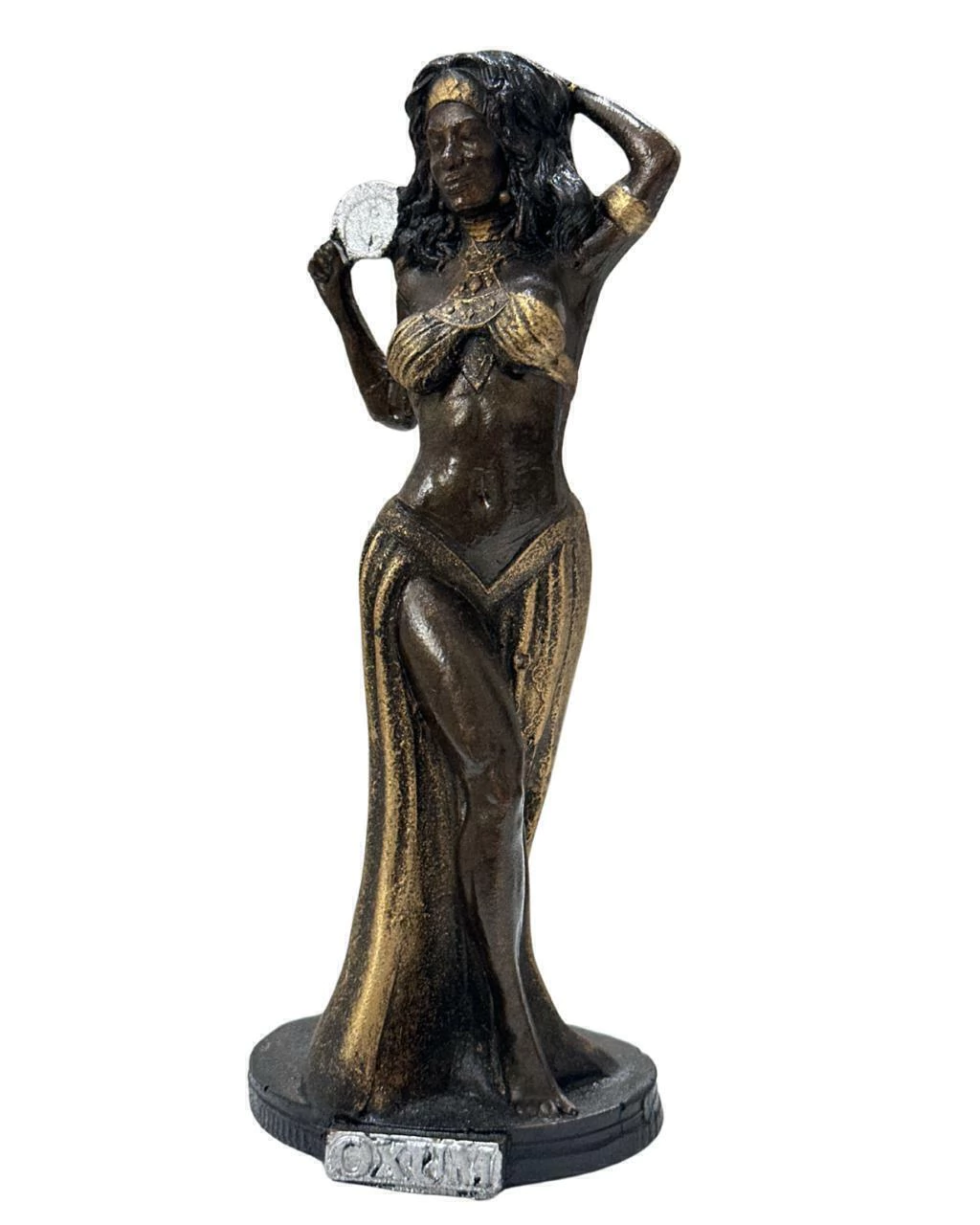 Doce, poderosa e envolvente, a imagem de Oxum em resina (15cm) representa a orixá das águas doces, do amor, da beleza e da fertilidade. Reverenciada nas religiões de matriz africana como uma mãe acolhedora e protetora, Oxum é símbolo de sensibilidade, prosperidade e intuição.