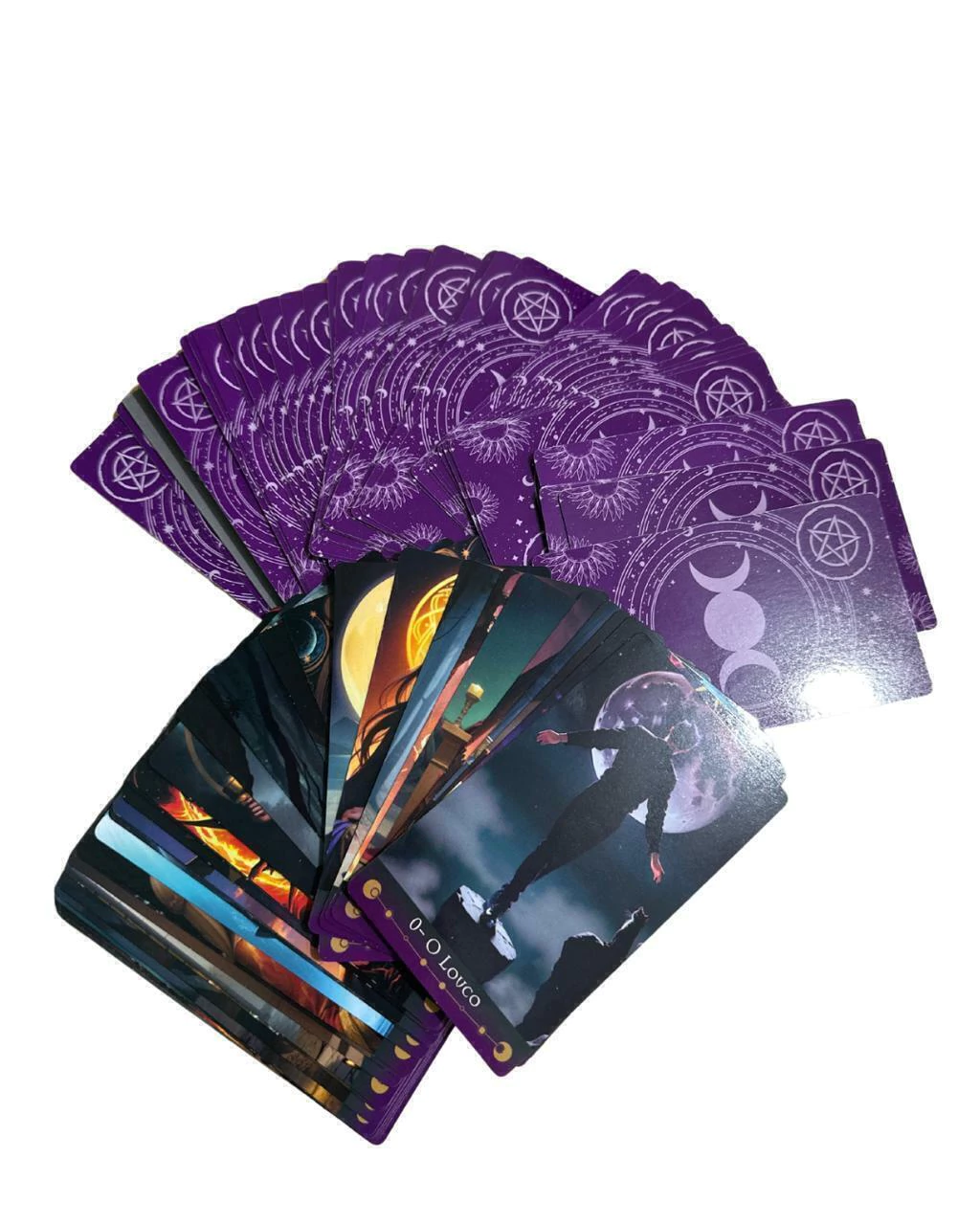 O Tarô das Bruxas é uma poderosa ferramenta de autoconhecimento e orientação espiritual, inspirada na rica tradição do povo cigano. Composto por 78 cartas, este baralho é ideal para consultas intuitivas, meditações e práticas de leitura oracular.
